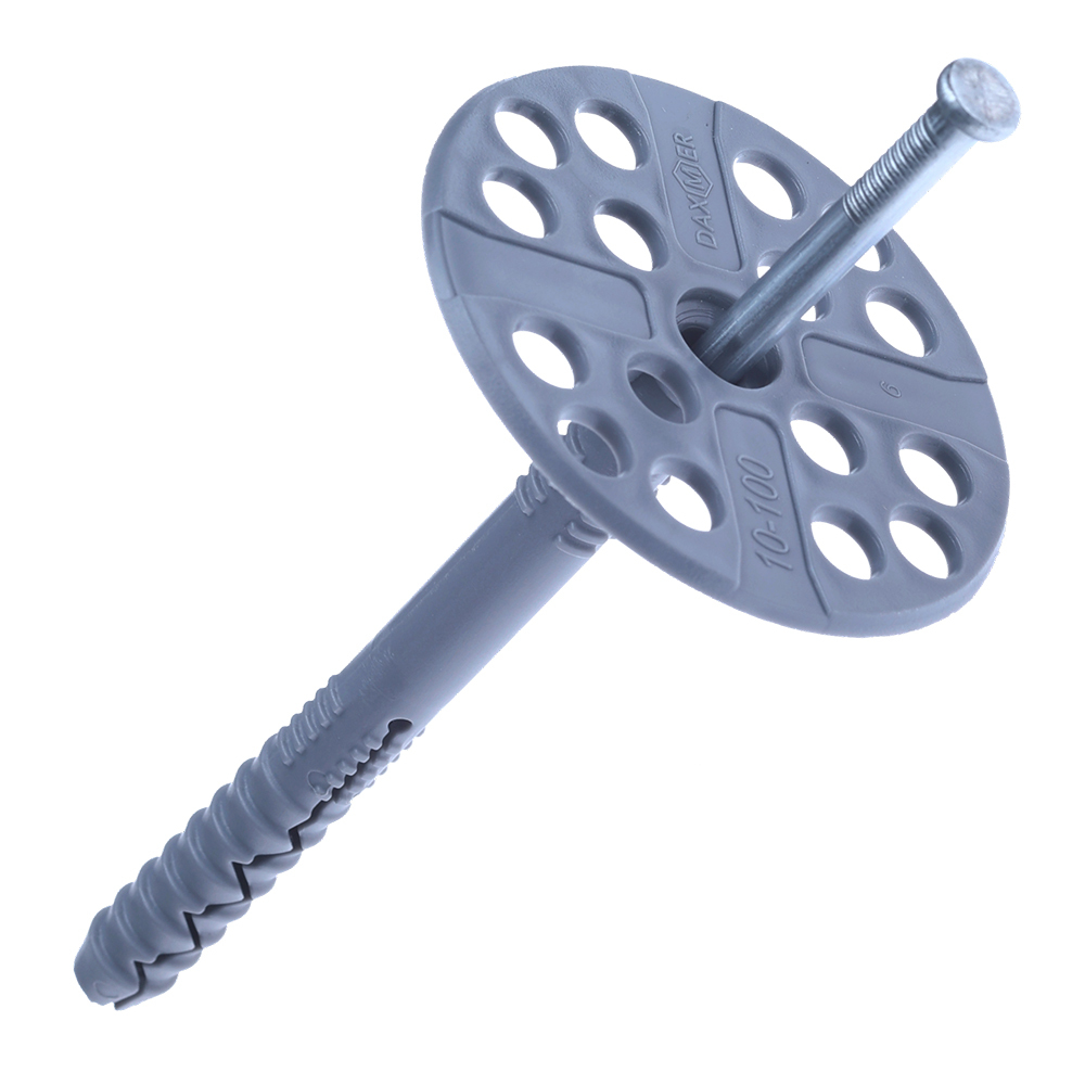 Дюбель с металлическим гвоздем Daxmer IZM предназначен для крепления к стенам различных теплоизоляционных материалов - плит из минеральной и каменной ваты, пенополистирола, пенопласта и других. Такой вид крепежа подходит для оснований из ячеистого бетона, монолитного бетона и кирпича. Устанавливается в предварительно высверленное отверстие при помощи молотка. Применяется для монтажа теплоизоляции в вентилируемых фасадах. Монтаж необходимых оснований при помощи крепежа осуществляется посредством распорного стержня, забитого в дюбель. Дюбель изготавливается из полимерных материалов, вследствие чего имеет долгий срок эффективной службы и не подвержен коррозии. Материал дюбеля - ударопрочный полипропилен, материал гвоздя - металл (IZM). Сохраняет свои свойства при низких температурах вплоть до -30°C. Продукция прошла сертификацию и имеет Техническое свидетельство Минстроя РФ.
