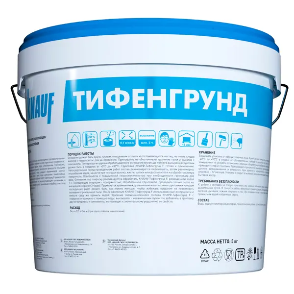 Грунтовка КНАУФ-ТИФЕНГРУНД предназначена для обработки основания в целях укрепления поверхности, снижения ее впитываемости и улучшения адгезии финишного покрытия (шпаклевки, краски, обои, облицовочной плитки и т.п.). Благодаря высокой проникающей способности подходит для грунтования мелкопористых материалов.