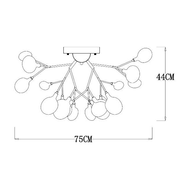 Высота люстры составляет 44 см, что позволяет легко установить её на любой потолок. Прозрачный цвет плафонов создаёт мягкое и приятное освещение, которое не будет утомлять глаза.
