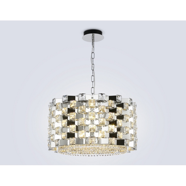 Подвесная люстра Ambrella серии High Light выполнена в стиле модерн и отлично подойдёт для установки в гостиной, на кухне, в кафе, магазине или над обеденным столом. Модель имеет хромированное глянцевое покрытие арматуры и прозрачные хрустальные плафоны. Люстра рассчитана на 12 ламп с цоколем E14 и максимальной мощностью 40 Вт каждая. Общая мощность освещения достигает 480 Вт, что обеспечивает световой поток на площади до 37 кв.м. Высота люстры регулируется от 29 до 120 см, что делает её универсальной для различных потолков, включая натяжные. Диаметр люстры составляет 54 см. Заказывайте Ambrella LH41001 по лучшей стоимости с быстрой доставкой! Подвесная люстра с хрусталем Ambrella High Light LH41001 продается сейчас по цене {price}. Производитель Ambrella дает гарантию на свои товары из раздела Люстры. Оформляйте заказ в интернет-магазине Лю.ру!