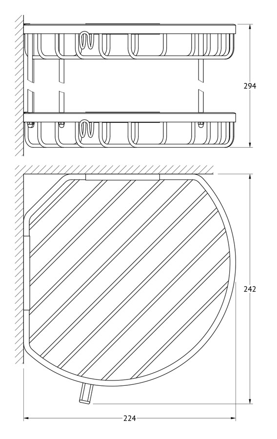 Полочка-решетка с крючками угловая 2-х ярусная 26/26 cm (хром) FBS RYN 026