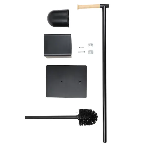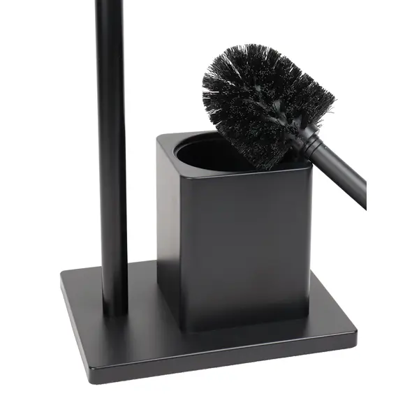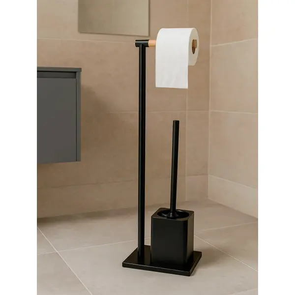 Стойка-ерш для унитаза Арчи — это аксессуар для ванной комнаты, который используется для хранения и поддержания в чистоте туалетного ершика. Она состоит из трех частей: пластиковой подставки, щетки с ручкой и бамбуковой стойки с держателем для туалетной бумаги. Черный цвет делает ее стильной и подходящей для любого интерьера.