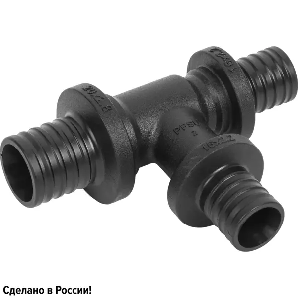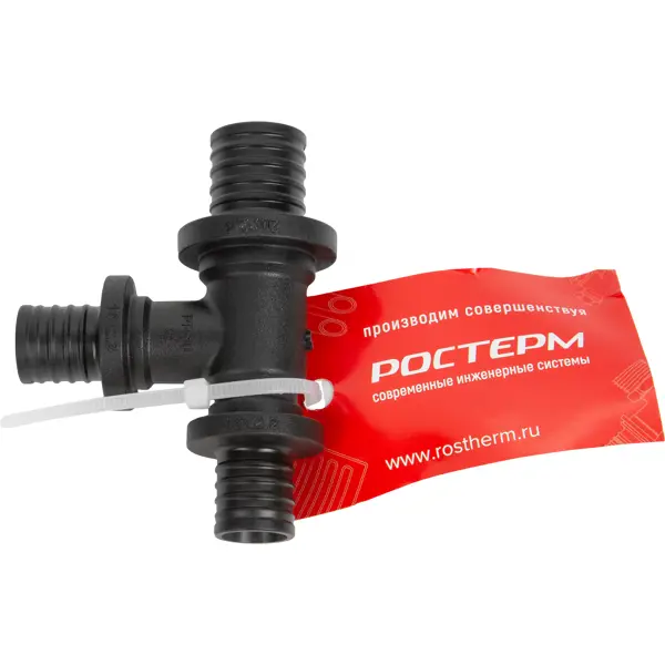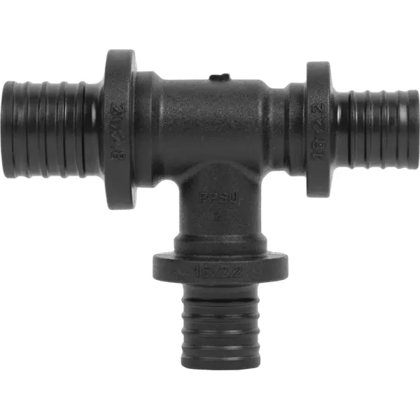 Тройник РОСТерм 20х16х16 PPSU переходной, используется для создания дополнительных соединений под прямым углом. Тройник имеет три отвода для стыковки двух труб из сшитого полиэтилена диаметром 16 мм и одной диаметром 20 мм, совместно с напрессовочными гильзами PVDF соответствующего размера. Используется в аксиальной системе для соединения полимерных труб РЕ-Х и PE-RT. Для производства фитингов используется материал полифенилсульфон (PPSU). Данный материал сохраняет превосходные механические, электрические и тепловые характеристики при длительном воздействии высоких температур.